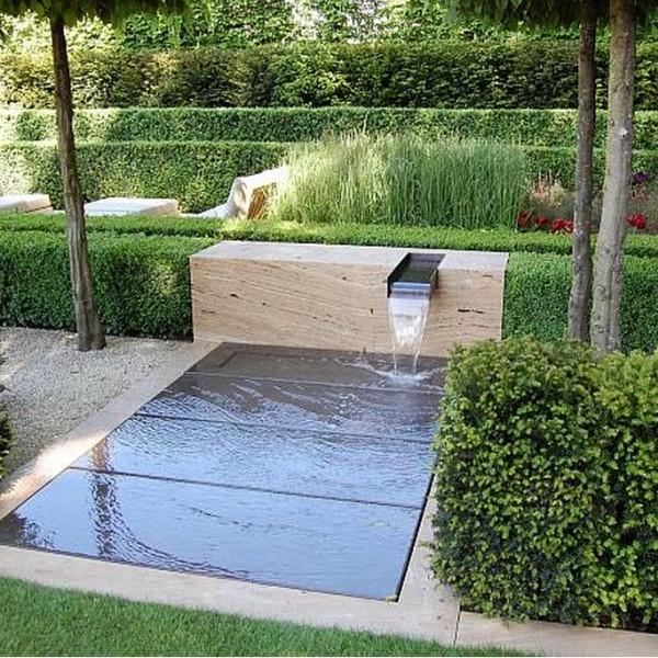 - kombinácie vody s kameňom, drevom alebo zeleňou