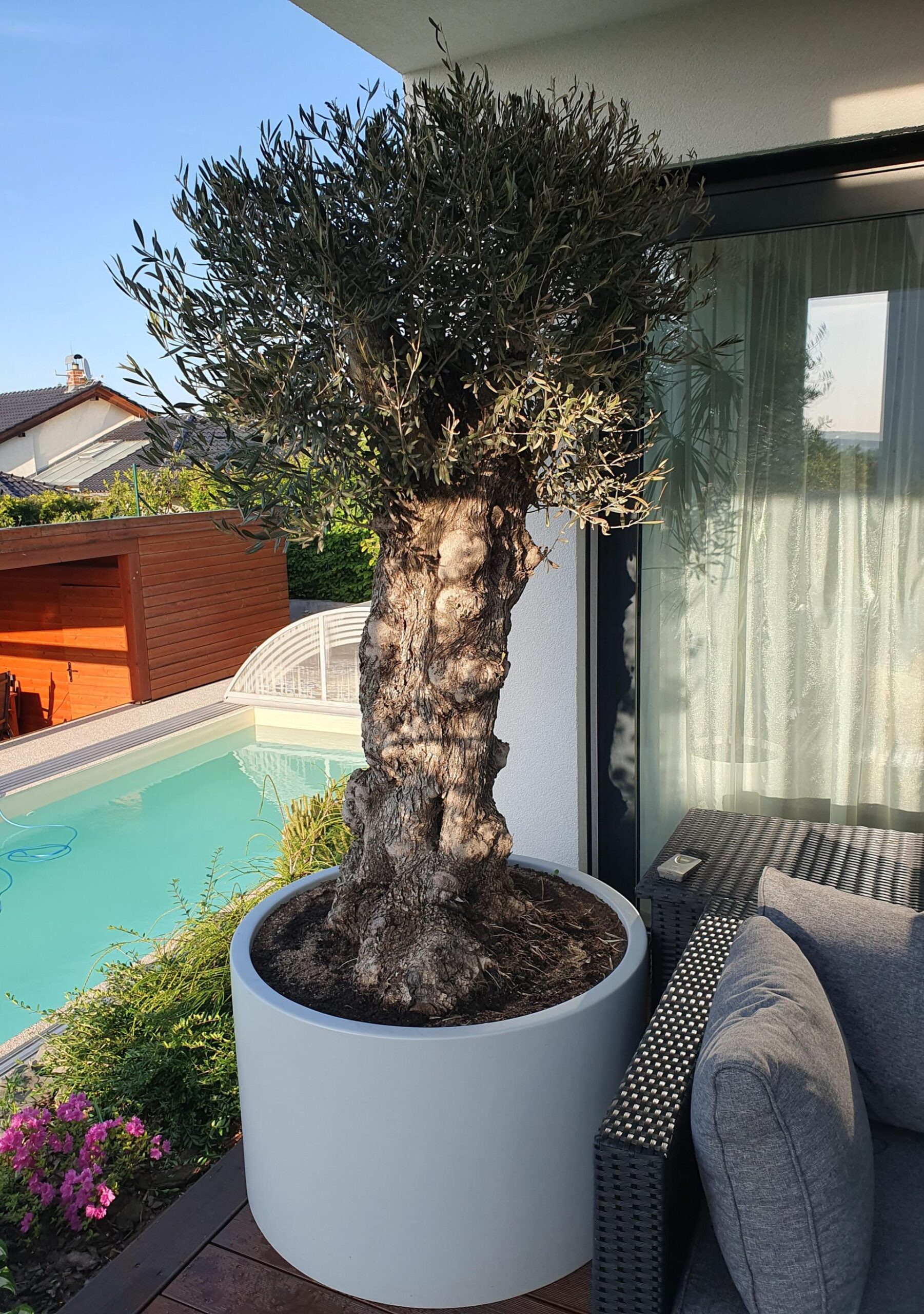 Najsilnejší efekt dosahujú v kombinácii s ďalšími prvkami exteriéru – napríklad s drevenou terasou, bazénom alebo vodnými prvkami, kde spoločne vytvárajú harmonický priestor s atmosférou oddychu a dovolenkového štýlu bývania.